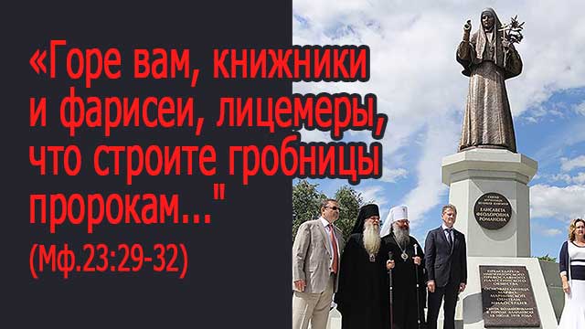О словах «Горе вам, книжники и фарисеи, лицемеры, что строите гробницы пророкам и украшаете памятники праведников, и говорите: если бы мы были во дни отцов наших, то не были бы сообщниками их в пролитии крови пророков; таким образом вы сами против себя свидетельствуете, что вы сыновья тех, которые избили пророков; дополняйте же меру отцов ваших" (Мф.23:29-32). О таких же современных фарисеях, лицемерах. / 24.09.2021г.