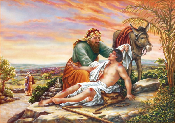 В то время, / один законник встал и, искушая Иисуса, сказал: Учитель! что мне делать, чтобы наследовать жизнь вечную? Он же сказал ему: в законе что написано? как читаешь? Он сказал в ответ: возлюби Господа Бога твоего всем сердцем твоим, и всею душою твоею, и всею крепостию твоею, и всем разумением твоим, и ближнего твоего, как самого себя. Иисус сказал ему: правильно ты отвечал; так поступай, и будешь жить. Но он, желая оправдать себя, сказал Иисусу: а кто мой ближний? На это сказал Иисус: некоторый человек шел из Иерусалима в Иерихон и попался разбойникам, которые сняли с него одежду, изранили его и ушли, оставив его едва живым. По случаю один священник шел тою дорогою и, увидев его, прошел мимо. Также и левит, быв на том месте, подошел, посмотрел и прошел мимо. Самарянин же некто, проезжая, нашел на него и, увидев его, сжалился и, подойдя, перевязал ему раны, возливая масло и вино; и, посадив его на своего осла, привез его в гостиницу и позаботился о нем; а на другой день, отъезжая, вынул два динария, дал содержателю гостиницы и сказал ему: позаботься о нем; и если издержишь что более, я, когда возвращусь, отдам тебе. Кто из этих троих, думаешь ты, был ближний попавшемуся разбойникам? Он сказал: оказавший ему милость. Тогда Иисус сказал ему: иди, и ты поступай так же. (Лук.10:25-37)