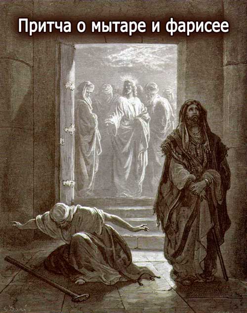И сказал Господь притчу сию, / два человека вошли в храм помолиться: один фарисей, а другой мытарь. Фарисей, став, молился сам в себе так: Боже! благодарю Тебя, что я не таков, как прочие люди, грабители, обидчики, прелюбодеи, или как этот мытарь: пощусь два раза в неделю, даю десятую часть из всего, что приобретаю. Мытарь же, стоя вдали, не смел даже поднять глаз на небо; но, ударяя себя в грудь, говорил: Боже! будь милостив ко мне грешнику! Сказываю вам, что сей пошел оправданным в дом свой более, нежели тот: ибо всякий, возвышающий сам себя, унижен будет, а унижающий себя возвысится. (Лук.18:10-14)