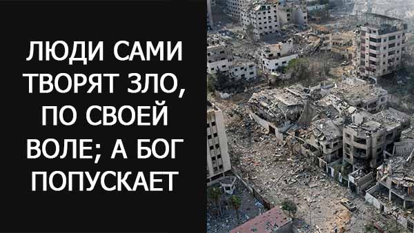 Люди сами творят зло, по своей воле; а Бог попускает.