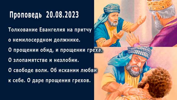 11-е воскресенье по 50-це. Евангелие от Матф.18:23-35, Притча о немилосердном должнике. Свт.Феофан Затворник. Прощение долгов ближнему — спасение.