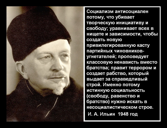 Социализм антисоциален потому, что он убивает свободу и Творческую инициативу; уравнивает всех в нищете и зависимости. Чтобы создать новую привилегированную касту партийных чиновников-угнетателей; проповедует классовую ненависть вместо братства; правит террором, создает рабство и выдает его за справедливый строй. Именно потому истинную социальность (свободу, справедливость и братство) надо искать в несоциалистическом строе. Это не будет «буржуазный строй», а строй правовой свободы и творческой социальности.
